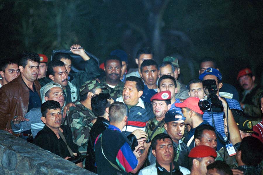 After two days if imprisonment, a victorious Hugo Chávez returns to the palace of Miraflores. Photo by Gabriel Osorio, courtesy of Orinoquiafoto.