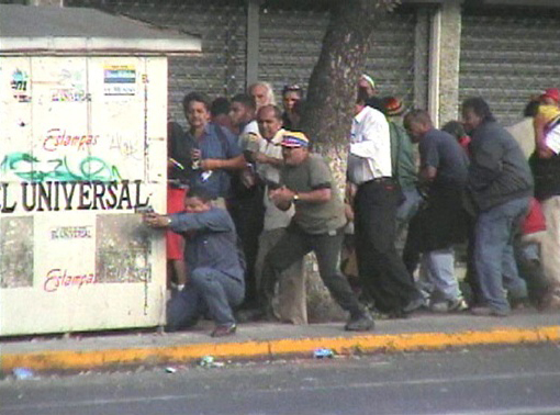 Pro-Chavez gunmen fire on police and anti-Chavez protesters on Baralt Avenue in Caracas. Photo courtesy of El Universal.