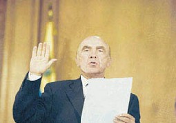 Dr. Pedro Carmona swears himself in as Interim President on April 12, 2002. |